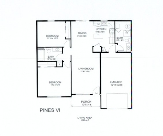 1,086 Square Feet View floor plan.